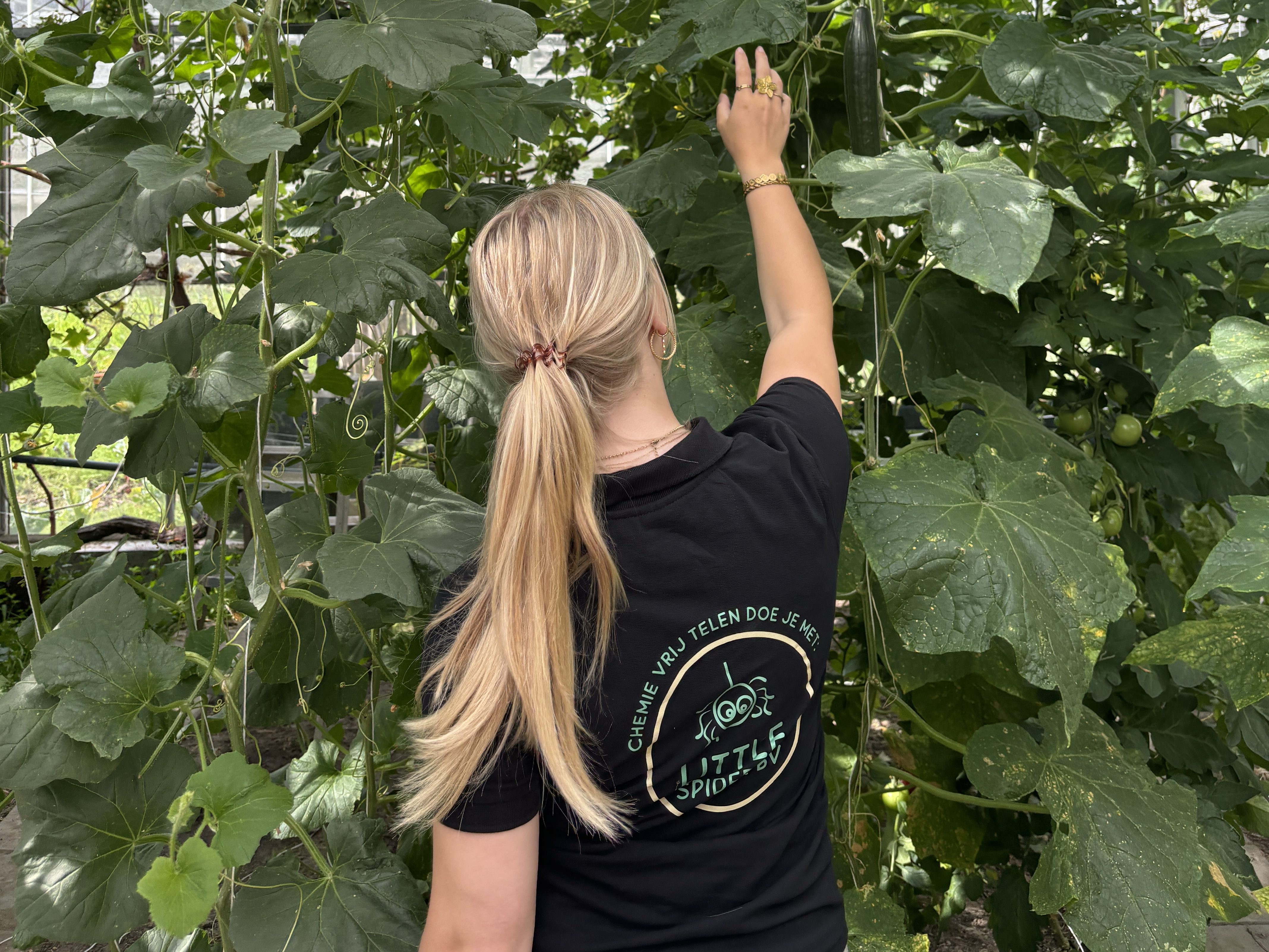 “De Little Spiders komen gewoon voor hier in de natuur! Wij hebben ze uit de natuur gehaald en op het bedrijf geïntroduceerd en vermeerderd. Nu zijn wij in de gelegenheid om de spinnen te kweken en te vermarkten. Het klinkt bijna te mooi om waar te zijn, maar door deze spinnen hebben wij op ons bedrijf al 9 jaar geen chemicaliën hoeven spuiten.“